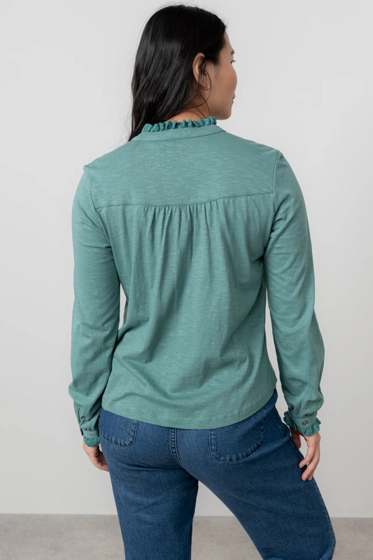 Sage Frill Organic Cotton Blouse Sea Mist