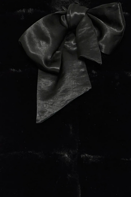 BYASKANA Faux Fur Ribbon Tie Black Vest