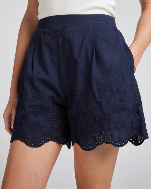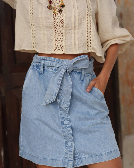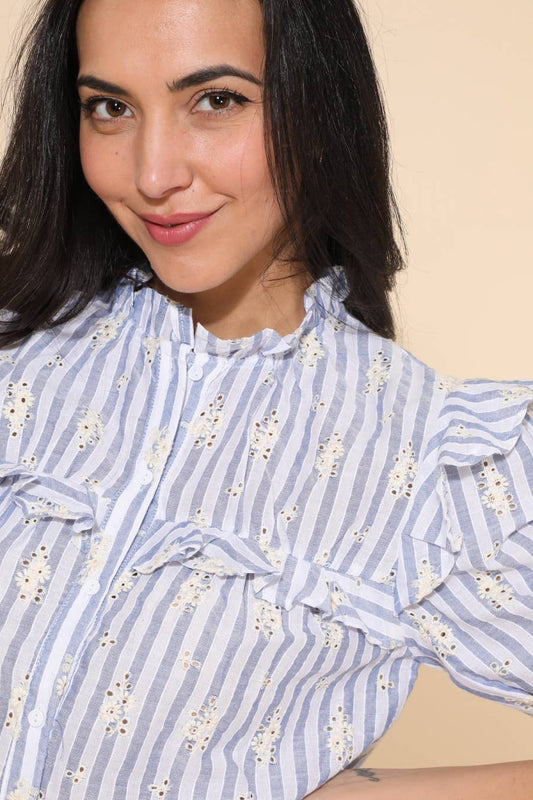 Yvie - Blue Stripe Ruffle Embroidered Blouse
