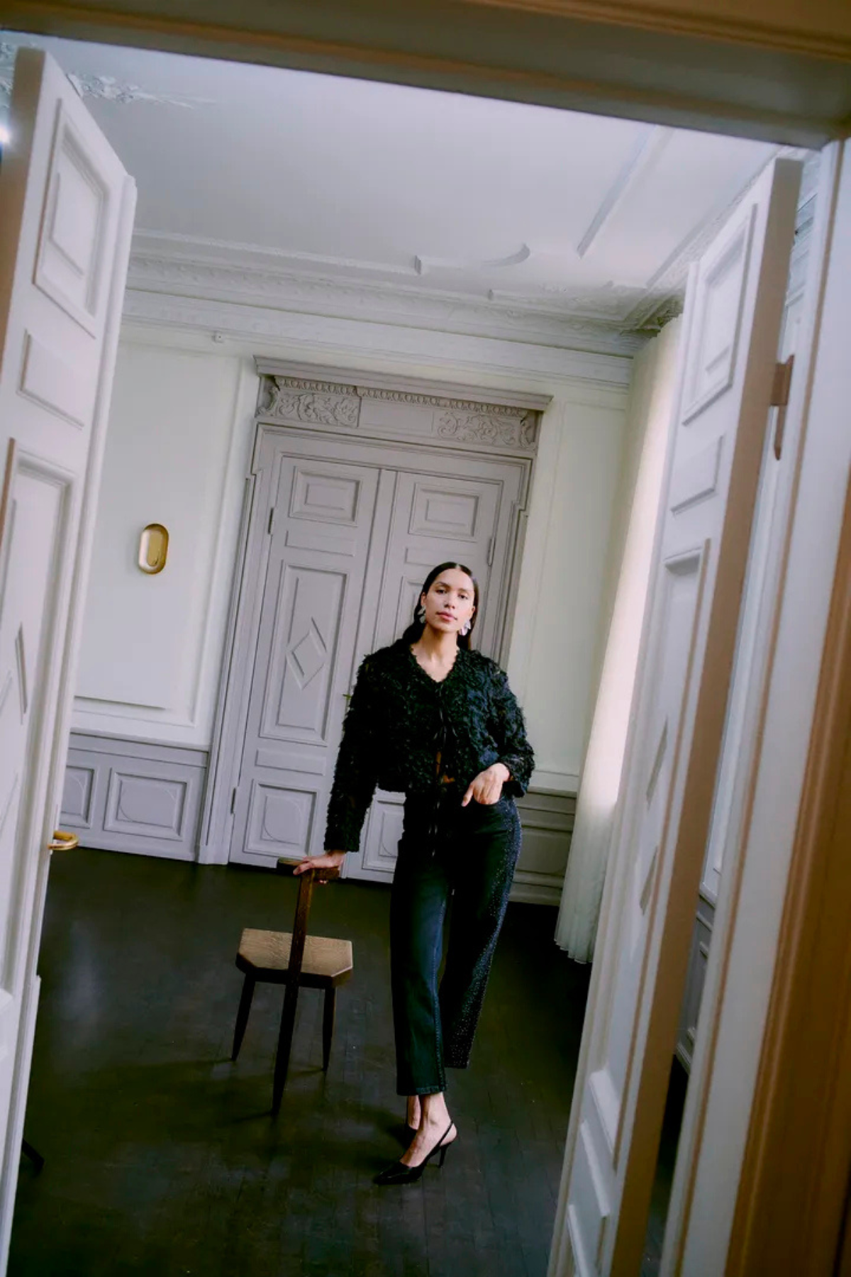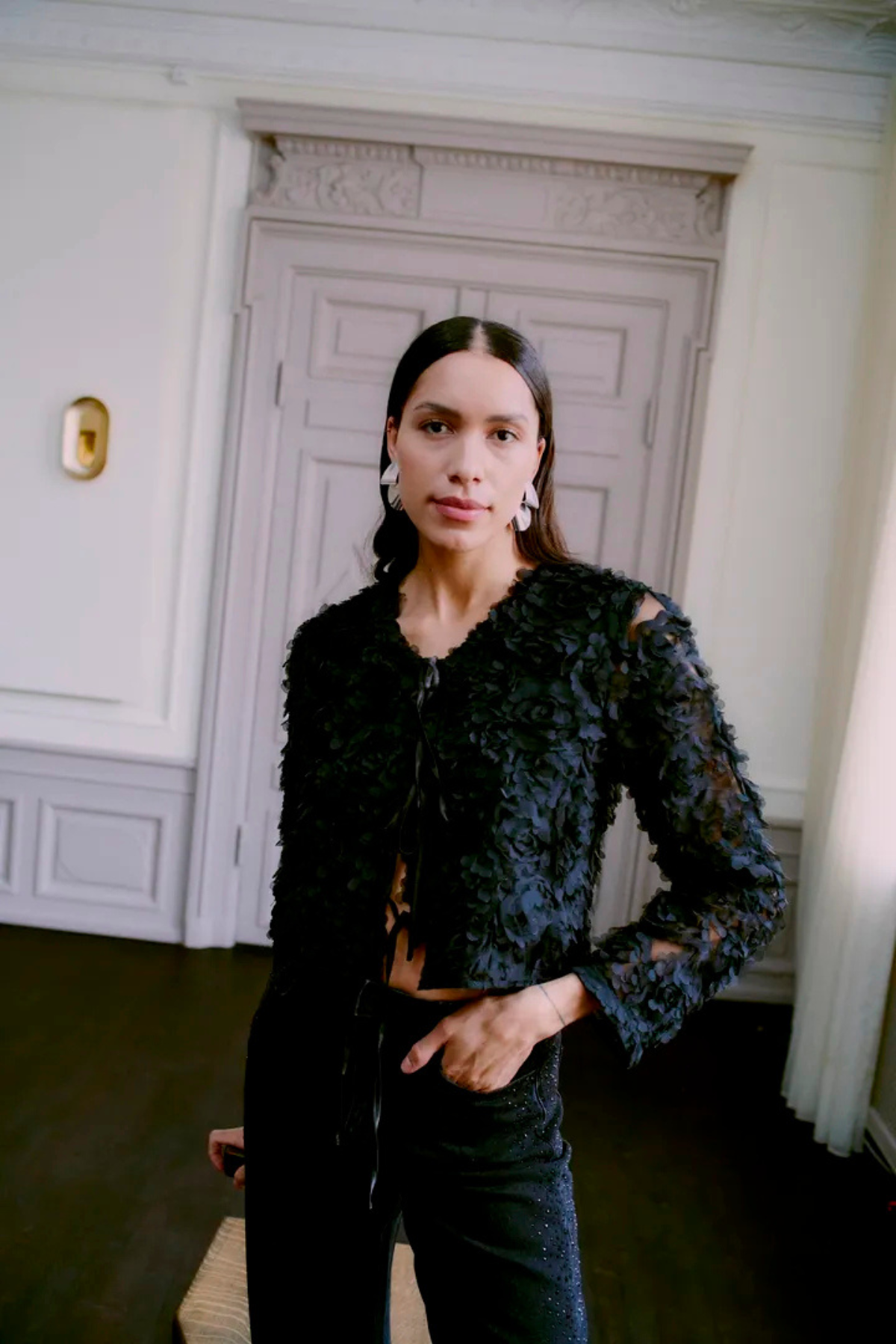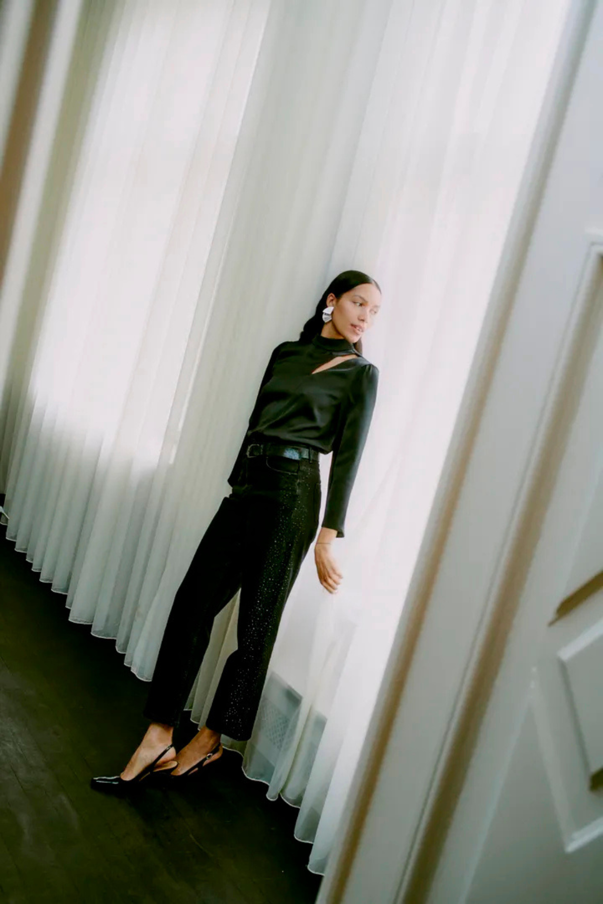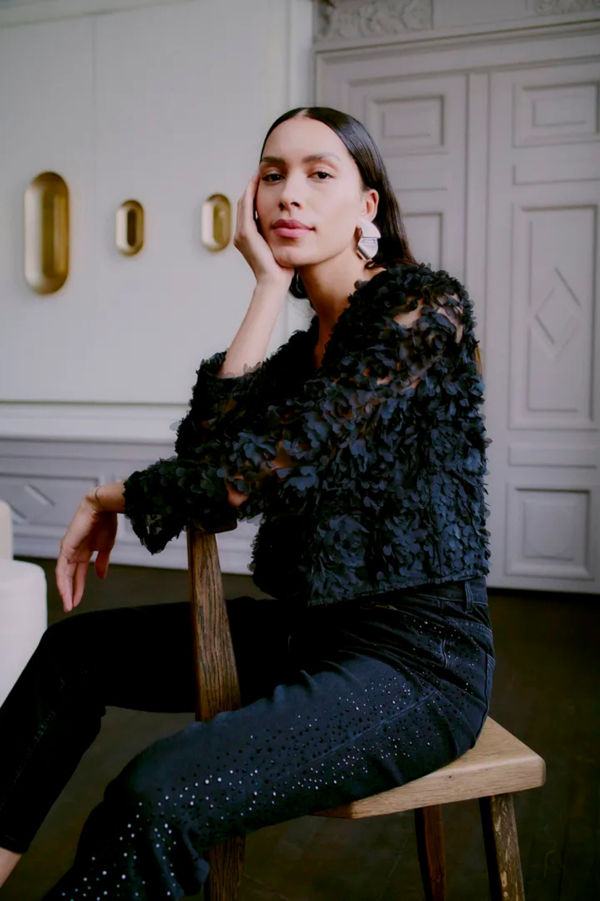 BYLARA Straight Black Denim Rhinestone Jeans