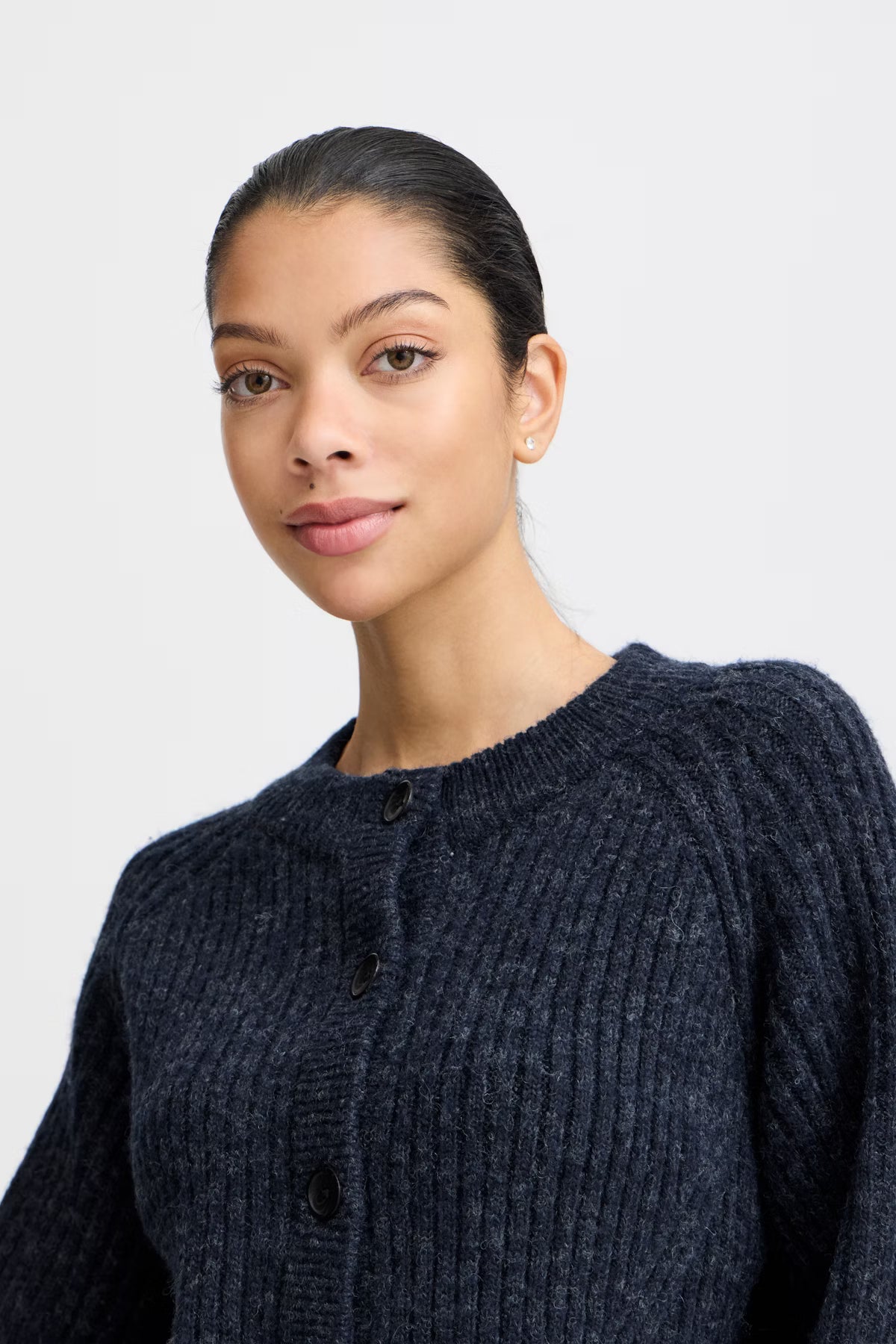 B. Young Cardigan for women featuring a relaxed fit, ribbed texture, and button front closure. Crew neckline and full-length sleeves offer a timeless, versatile look ideal for comfort and layering in any season.