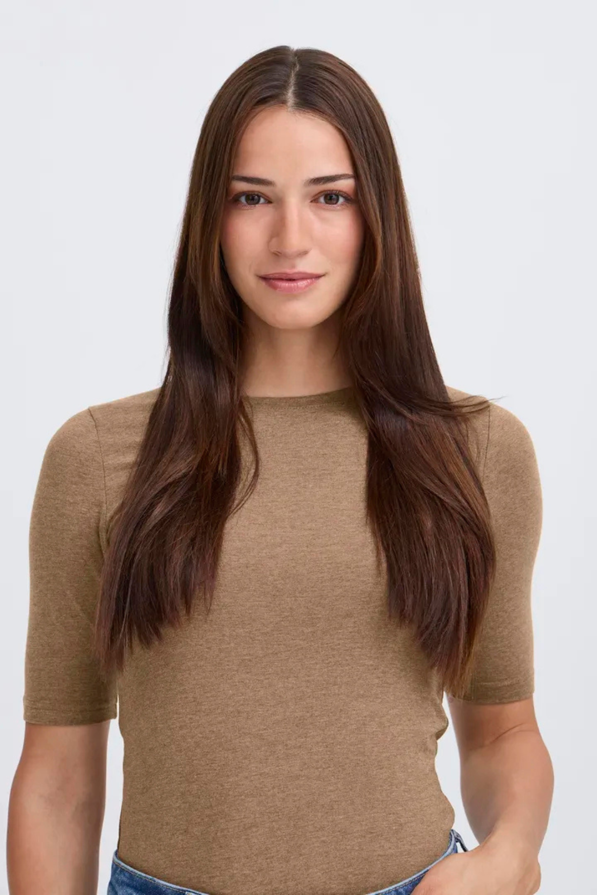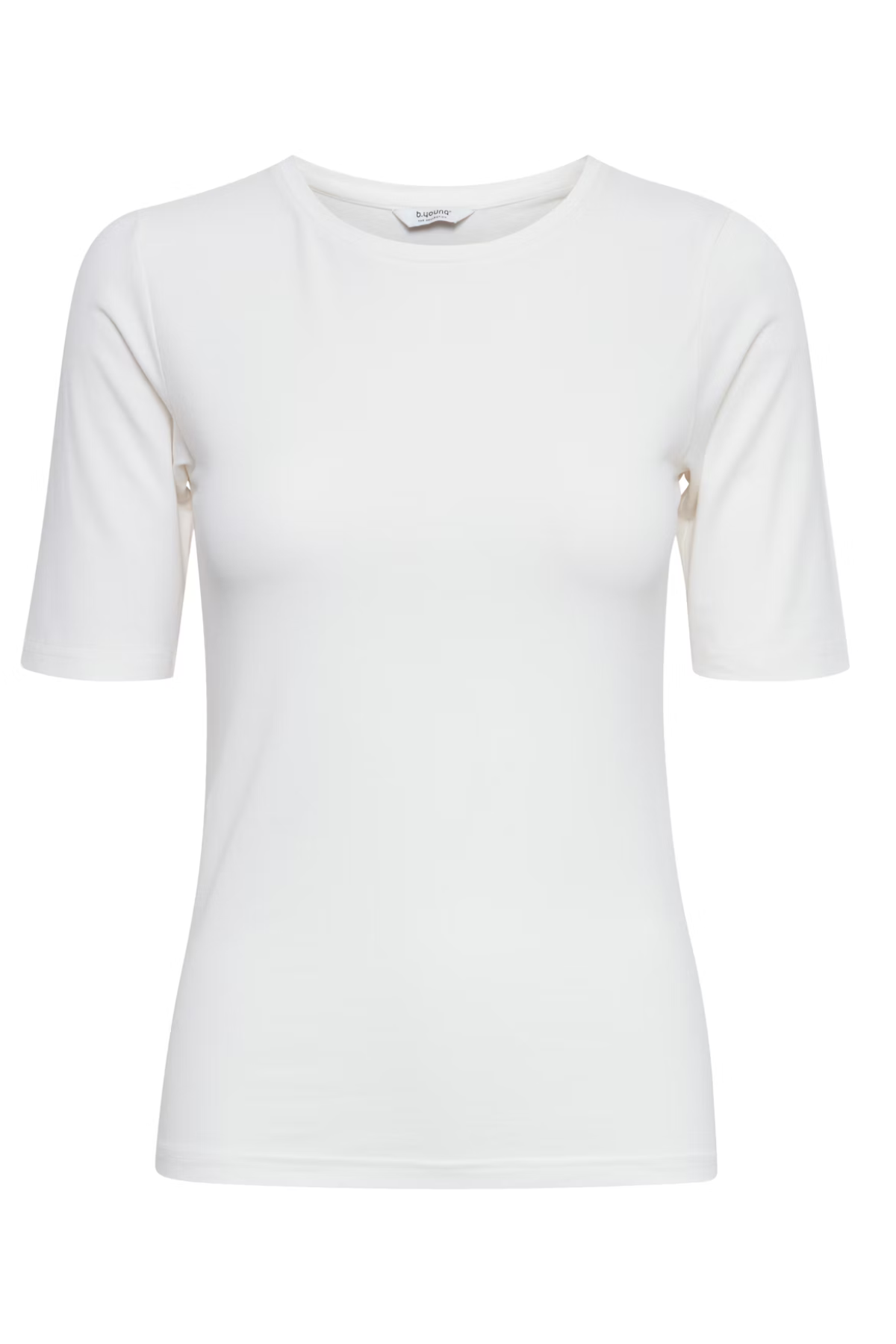 This women's slim fit T-shirt features a classic crew neckline and half sleeves for versatile everyday style. The soft, comfortable design is tailored for a flattering silhouette and easy layering across occasions.