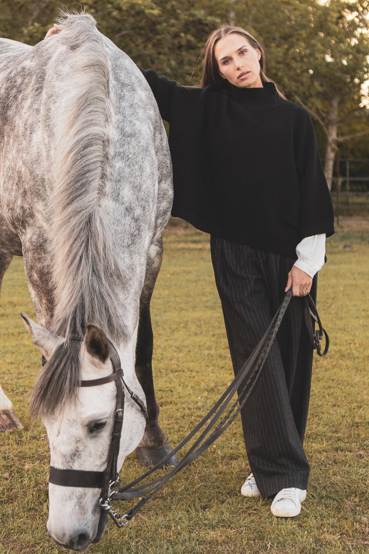 The Vicki jumper is a boxy, funnel-neck style designed to flatter every figure. Crafted from 100% cotton rib knit, it offers comfort and versatility, making it a perfect all-year-round staple. Small side vents add subtle detail, while its relaxed silhouette ensures effortless style.