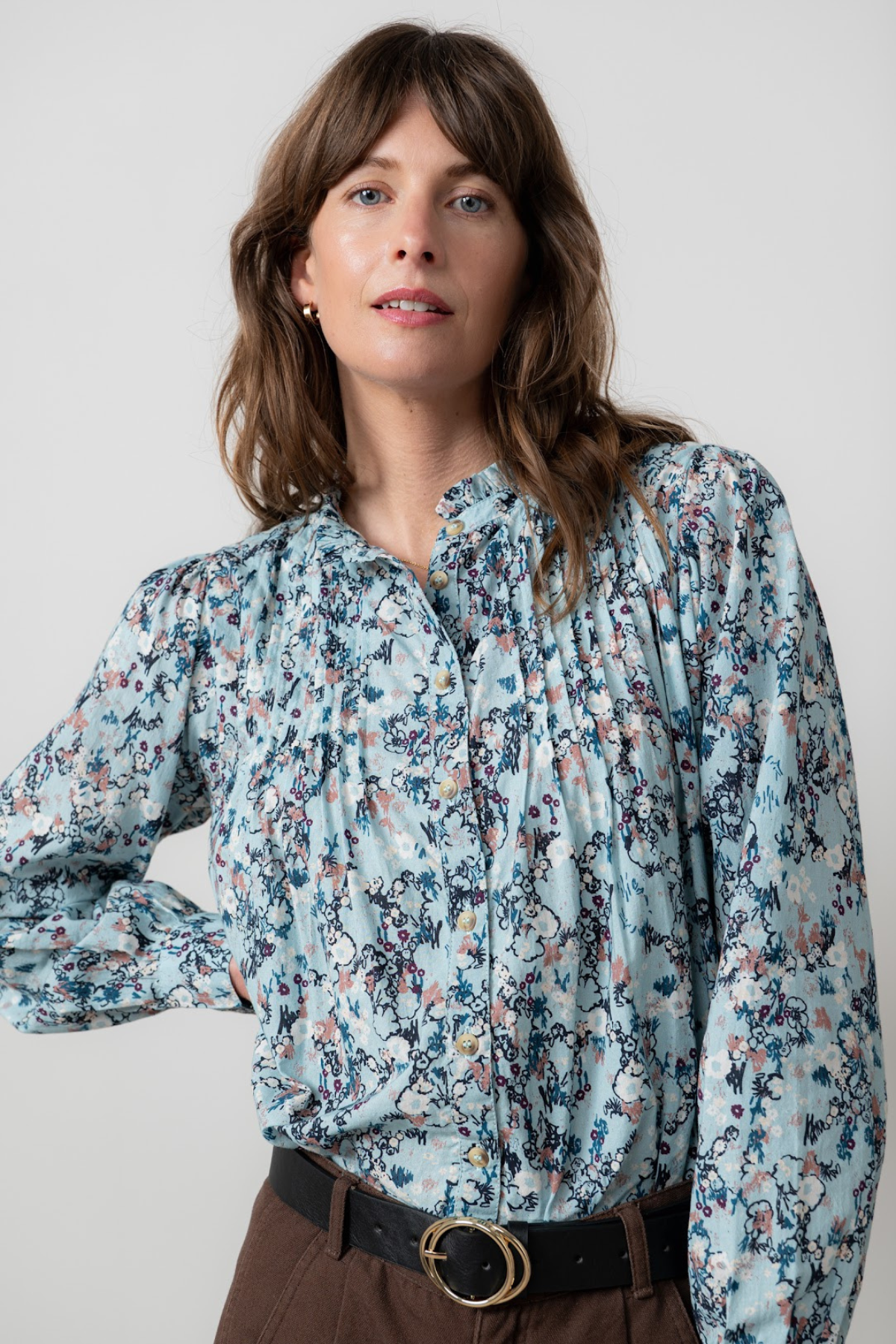 A relaxed fit body and subtle blouson sleeves with gather at the shoulders and cuffs. This versatile blouse will elevate any outfit in an instant.